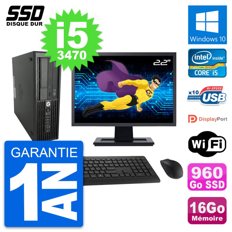 PC HP WorkStation Z220 SFF Ecran 22" i5-3470 RAM 16Go SSD 960Go Windows 10 Wifi