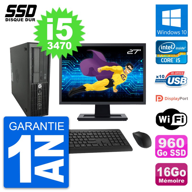 PC HP WorkStation Z220 SFF Ecran 27" i5-3470 RAM 16Go SSD 960Go Windows 10 Wifi