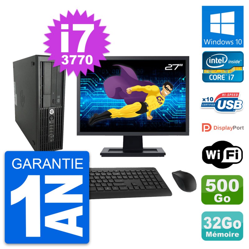 PC HP Z220 SFF Ecran 27" Core i7-3770 RAM 32Go Disque Dur 500Go Windows 10 Wifi