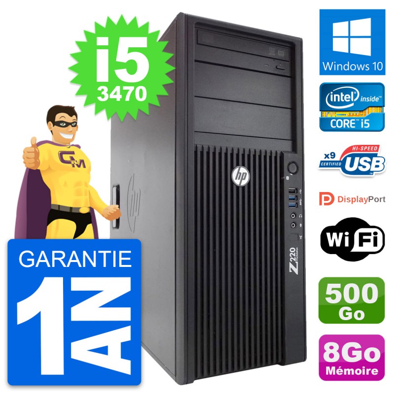 PC Tour HP WorkStation Z220 MT - Intel Core i5-3470 3.2 Ghz (6 Mo) - 8 Go DDR3 - Disque Dur 3,5" 500 Go - Graveur DVD - Clef Wifi USB - Windows 10 - Garantie 1 an.
