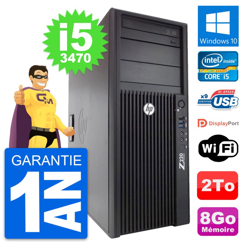 PC Tour HP WorkStation Z220 MT - Intel Core i5-3470 3.2 Ghz (6 Mo) - 8 Go DDR3 - Disque Dur 3,5" 2 To - Graveur DVD - Clef Wifi USB - Windows 10 - Garantie 1 an.