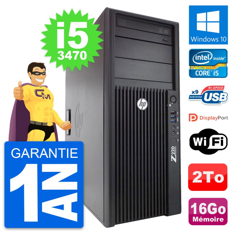 PC Tour HP WorkStation Z220 MT - Intel Core i5-3470 3.2 Ghz (6 Mo) - 16 Go DDR3 - Disque Dur 3,5" 2 To - Graveur DVD - Clef Wifi USB - Windows 10 - Garantie 1 an.
