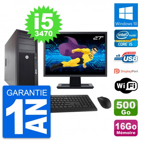 PC Tour HP WorkStation Z220 MT - Intel Core i5-3470 3.2 Ghz (6 Mo) - 16 Go DDR3 - Disque Dur 3,5" 500 Go - Graveur DVD - Clef Wifi USB - Windows 10 - Livré avec Ecran 27" + clavier + souris (Marques et modèles variables) - Garantie 1 an.