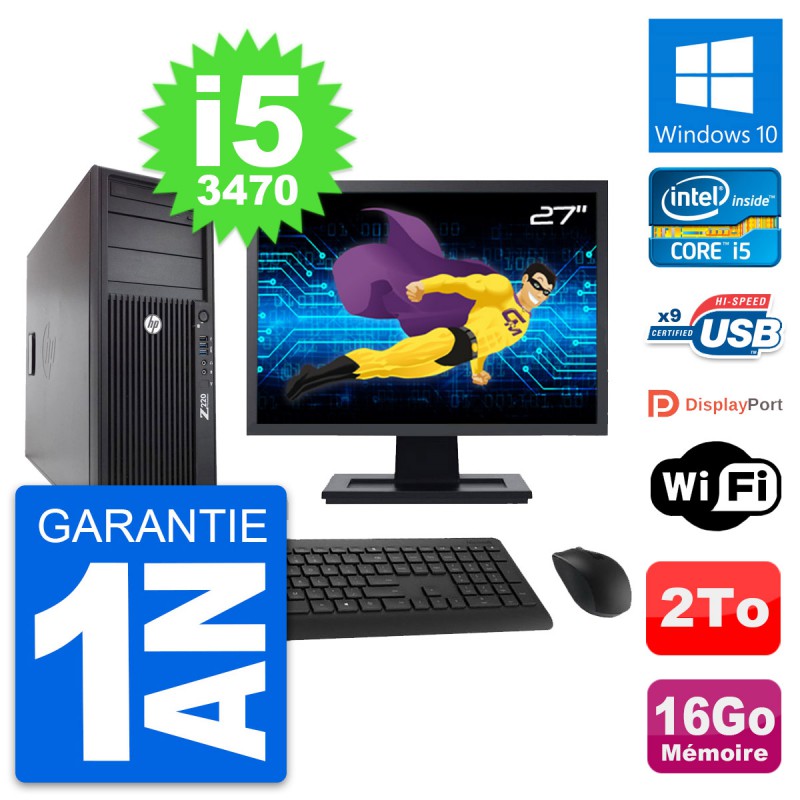 PC Tour HP Z220 Ecran 27" Intel Core i5-3470 RAM 16Go Disque 2To Windows 10 Wifi