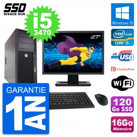 PC Tour HP WorkStation Z220 Ecran 27" i5-3470 RAM 16Go SSD 120Go Windows 10 Wifi
