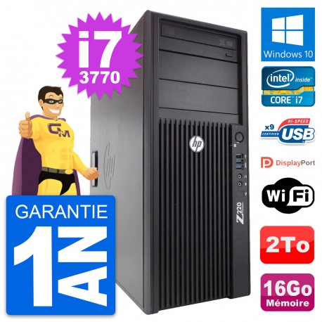 PC Tour HP WorkStation Z220 MT - Intel Core i7-3770 3.4 Ghz (8 Mo) - 16 Go DDR3 - Disque Dur 3,5" 2 To - Graveur DVD - Clef Wifi USB - Windows 10 - Garantie 1 an.
