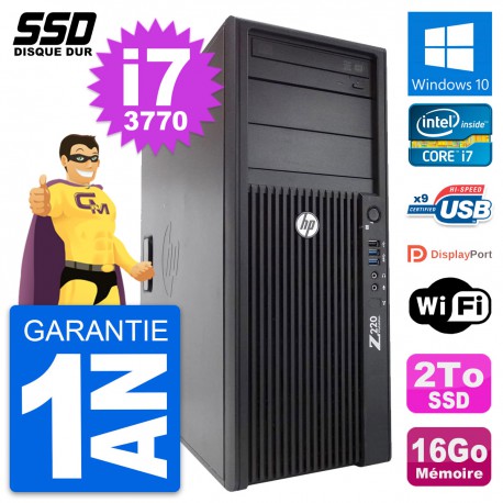 PC Tour HP WorkStation Z220 MT - Intel Core i7-3770 3.4 Ghz (8 Mo) - 16 Go DDR3 - Disque Dur SSD 2 To - Graveur DVD - Clef Wifi USB - Windows 10 - Garantie 1 an.