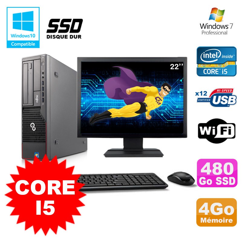 Lot PC Fujitsu Esprimo E700 E90+ SFF - i5-2400 3.1GHz (Turbo 3.4Ghz) - 4 Coeurs (4 Threads) - 4 Go DDR3 - 480Go SSD - Graveur DVD - Clé WIFI USB - Windows 7 Pro - Pack Écran 22"/Clavier/Souris (Marques et modèles selon arrivages) - Garantie 6 mois.