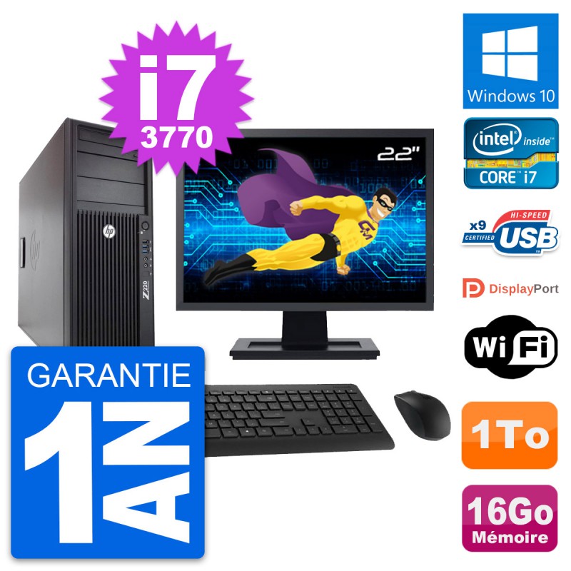 PC Tour HP Z220 Ecran 22" Intel Core i7-3770 RAM 16Go Disque 1To Windows 10 Wifi