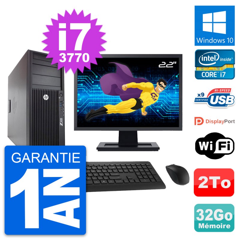 PC Tour HP Z220 Ecran 22" Intel Core i7-3770 RAM 32Go Disque 2To Windows 10 Wifi