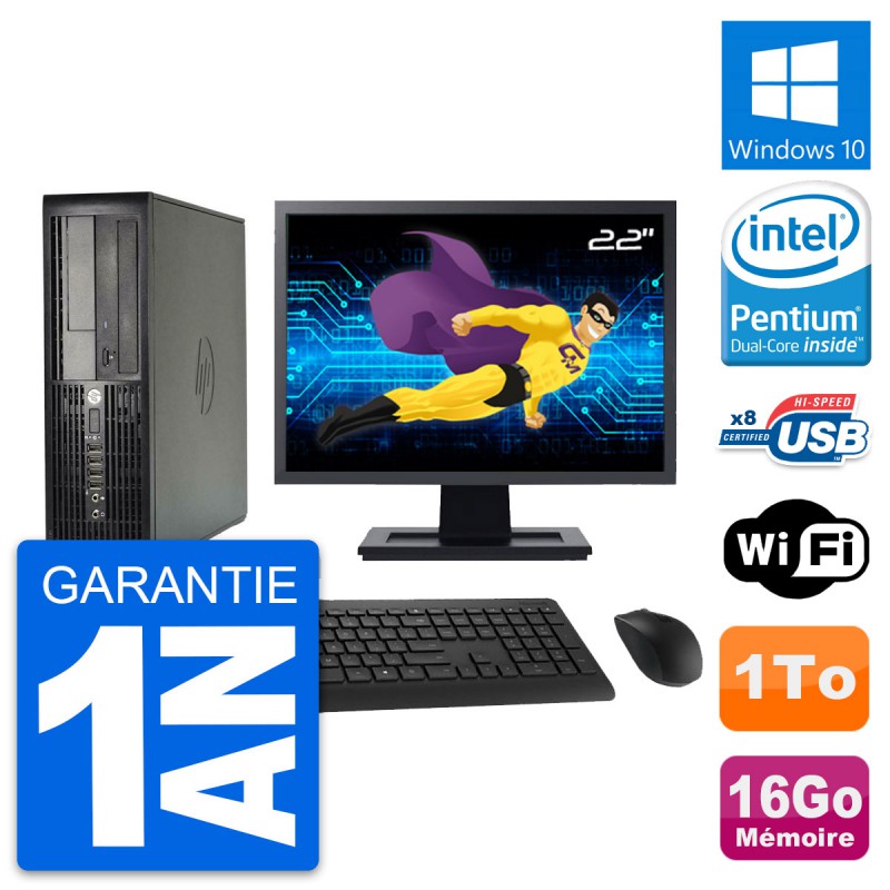 PC HP Compaq Pro 4300 SFF - Intel Pentium Dual-Core G2020 2.9 Ghz (3 Mo) - 16 Go DDR3 - Disque Dur 3,5" 1 To - Graveur DVD - Clef Wifi USB - Windows 10 - Livré avec Ecran 22" + clavier + souris (Marques et modèles variables) - Garantie 1 an.