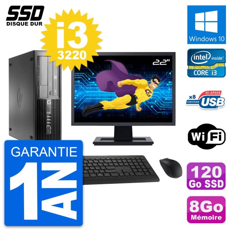 PC HP Compaq Pro 4300 SFF - Intel Core i3-3220 3.3 Ghz (3 Mo) - 8 Go DDR3 - Disque Dur SSD 120 Go - Graveur DVD - Clef Wifi USB - Windows 10 - Livré avec Ecran 22" + clavier + souris (Marques et modèles variables) - Garantie 1 an.