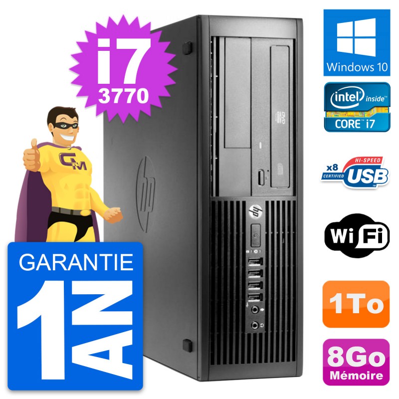 PC HP Compaq Pro 4300 SFF - Intel Core i7-3770 3.4 Ghz (8 Mo) - 8 Go DDR3 - Disque Dur 3,5" 1 To - Graveur DVD - Clef Wifi USB - Windows 10 - Garantie 1 an.