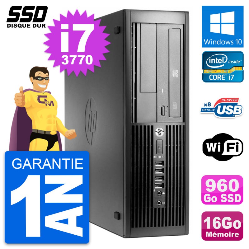 PC HP Compaq Pro 4300 SFF - Intel Core i7-3770 3.4 Ghz (8 Mo) - 16 Go DDR3 - Disque Dur SSD 960 Go - Graveur DVD - Clef Wifi USB - Windows 10 - Garantie 1 an.