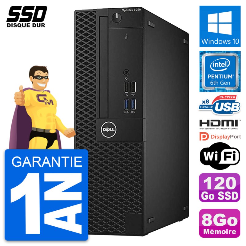 PC Dell OptiPlex 3050 SFF - Intel Pentium Dual-Core G4400 3.3 Ghz (3 Mo) - 8 Go DDR4 - SSD 120 Go - Clef Wifi USB - Windows 10 - Garantie 1 an.