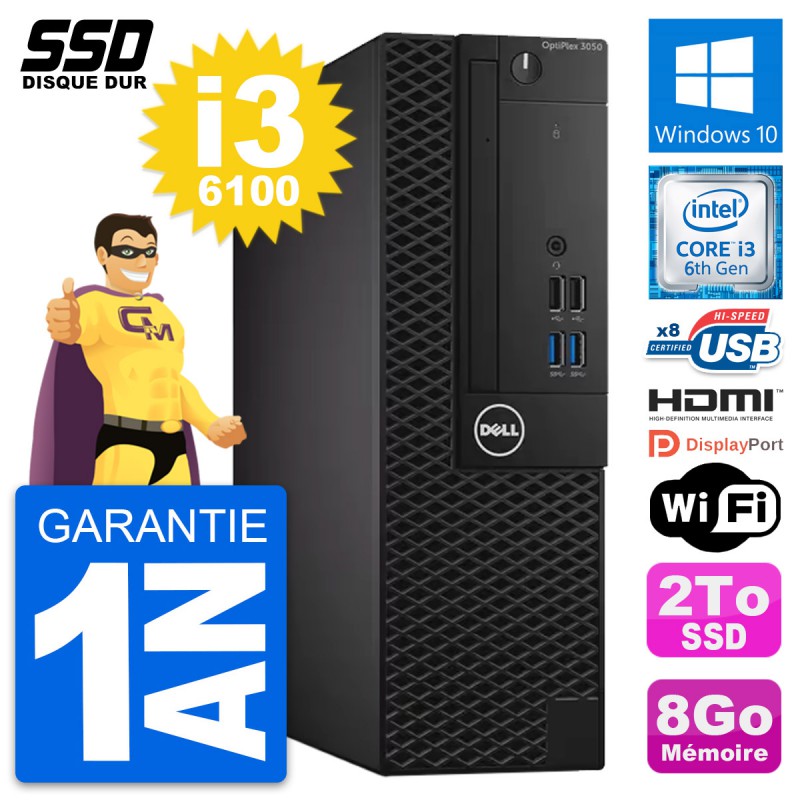 PC Dell OptiPlex 3050 SFF Intel i3-6100 RAM 8Go SSD 2To HDMI Windows 10 Wifi