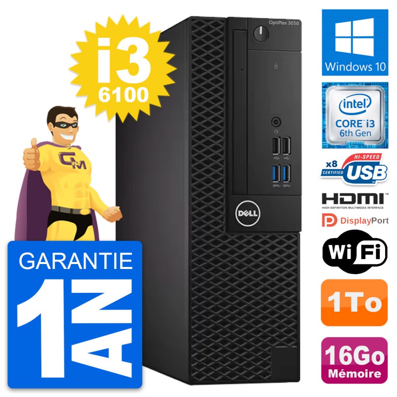 PC Dell OptiPlex 3050 SFF Intel i3-6100 RAM 16Go Disque 1To HDMI Windows 10 Wifi