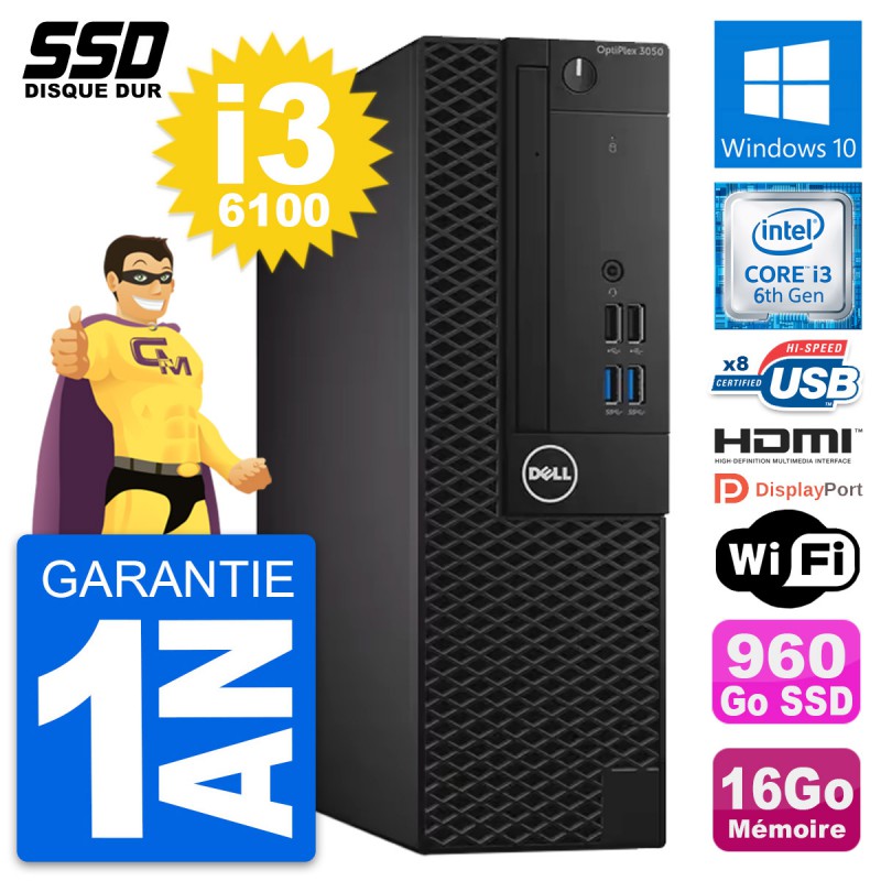 PC Dell OptiPlex 3050 SFF Intel i3-6100 RAM 16Go SSD 960Go HDMI Windows 10 Wifi