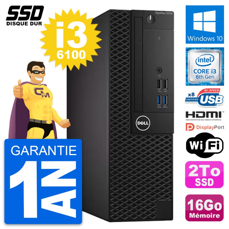 PC Dell OptiPlex 3050 SFF Core i3-6100 RAM 16Go SSD 2To HDMI Windows 10 Wifi
