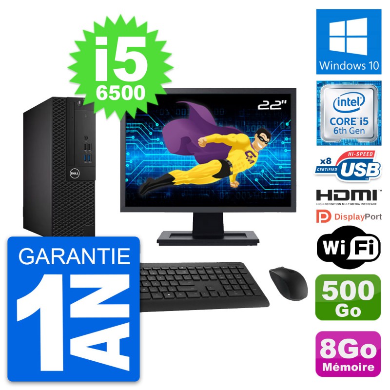 PC Dell 3050 SFF Ecran 22" i5-6500 RAM 8Go Disque Dur 500Go HDMI Windows 10 Wifi