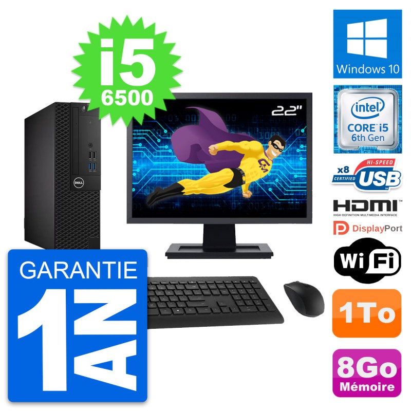 PC Dell OptiPlex 3050 SFF - Intel Core i5-6500 3.2 Ghz (6 Mo) - 8 Go DDR4 - Disque Dur 3,5" 1 To - Clef Wifi USB - Windows 10 - Livré avec Ecran 22" + clavier + souris (Marques et modèles variables) - Garantie 1 an.