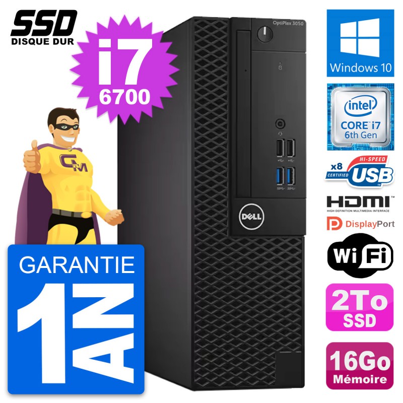 PC Dell OptiPlex 3050 SFF Core i7-6700 RAM 16Go SSD 2To HDMI Windows 10 Wifi