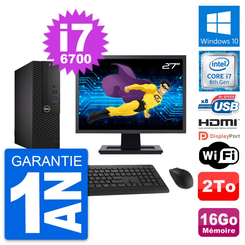 PC Dell 3050 SFF Ecran 27" Core i7-6700 RAM 16Go Disque 2To HDMI Windows 10 Wifi