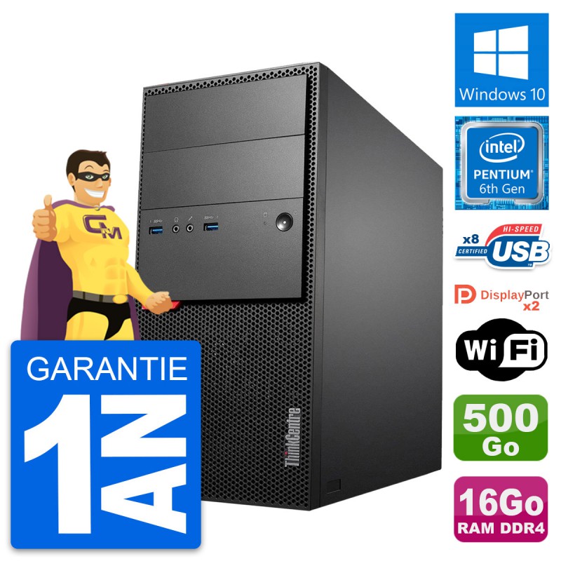 PC Tour Lenovo ThinkCentre M800 - Intel Pentium Dual-Core G4400 3.3 Ghz (3 Mo) - 16 Go DDR4 - Disque Dur 3,5" 500 Go - Clef Wifi USB - Windows 10 - Garantie 1 an.