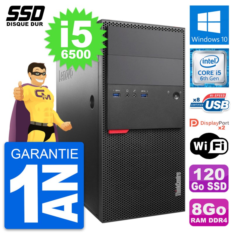 PC Tour Lenovo ThinkCentre M800 - Intel Core i5-6500 3.2 Ghz (6 Mo) - 8 Go DDR4 - SSD 120 Go - Clef Wifi USB - Windows 10 - Garantie 1 an.