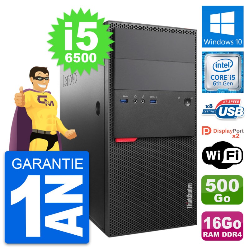 PC Tour Lenovo ThinkCentre M800 i5-6500 RAM 16Go Disque 500Go Windows 10 Wifi
