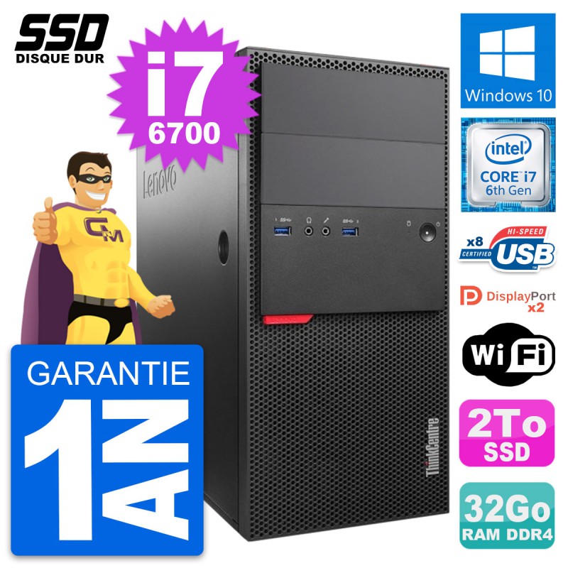 PC Tour Lenovo ThinkCentre M800 - Intel Core i7-6700 3.4 Ghz (8 Mo) - 32 Go DDR4 - SSD 2 To - Clef Wifi USB - Windows 10 - Garantie 1 an.