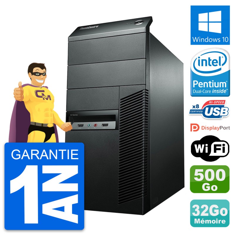 PC Tour Lenovo ThinkCentre M92p G2020 RAM 32Go Disque Dur 500Go Windows 10 Wifi