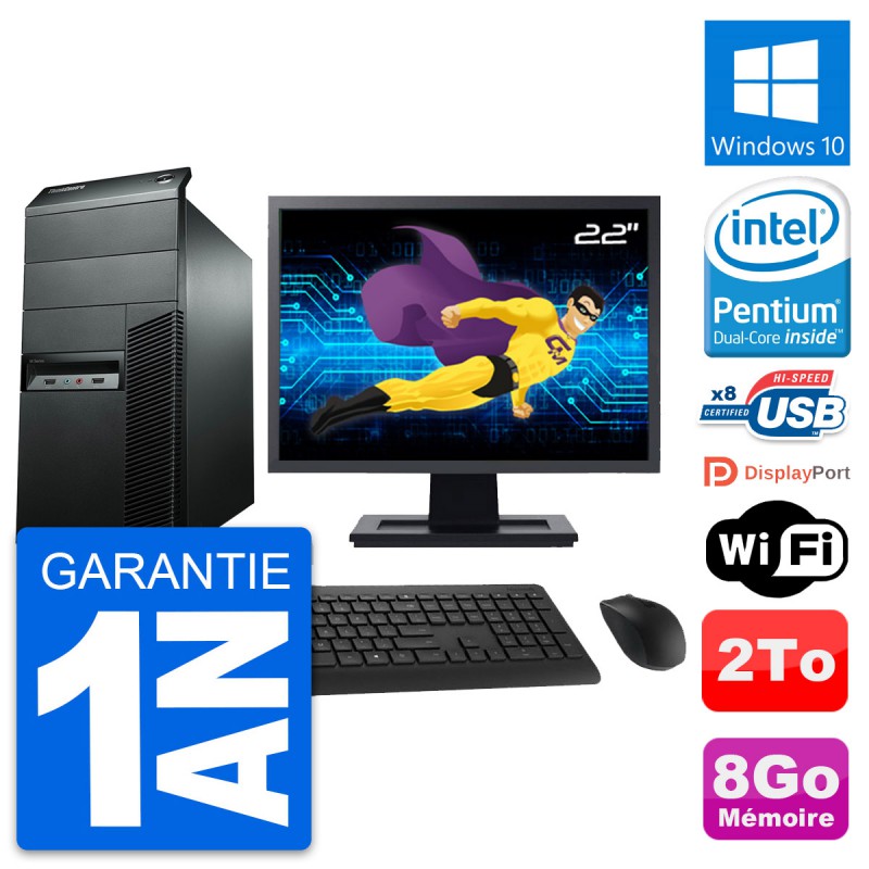PC Tour Lenovo M92p Ecran 22" Intel G2020 RAM 8Go Disque Dur 2To Windows 10 Wifi