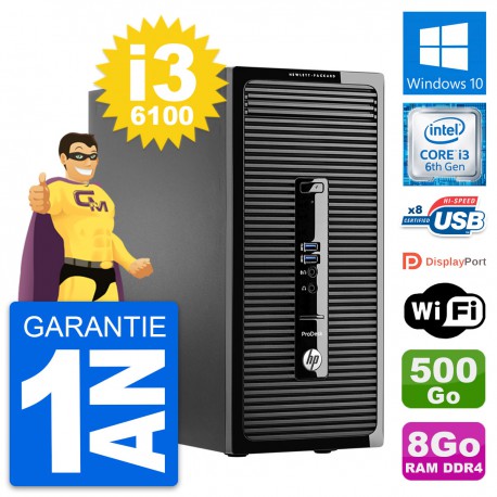 PC Tour HP ProDesk 400 G3 MT - Intel Core i3-6100 3.7 Ghz (3 Mo) - 8 Go DDR4 - Disque Dur 3,5" 500 Go - Clef Wifi USB - Windows 10 - Garantie 1 an.