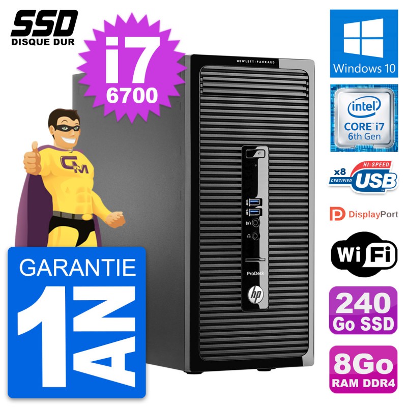 PC Tour HP ProDesk 400 G3 MT - Intel Core i7-6700 3.4 Ghz (8 Mo) - 8 Go DDR4 - SSD 240 Go - Clef Wifi USB - Windows 10 - Garantie 1 an.
