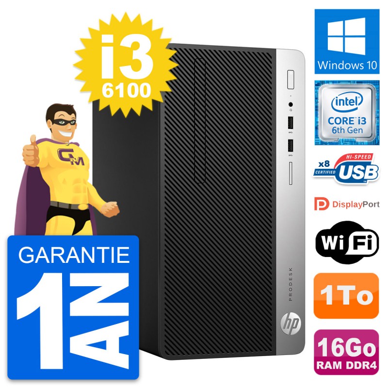 PC Tour HP ProDesk 400 G4 MT Intel i3-6100 RAM 16Go Disque 1To Windows 10 Wifi