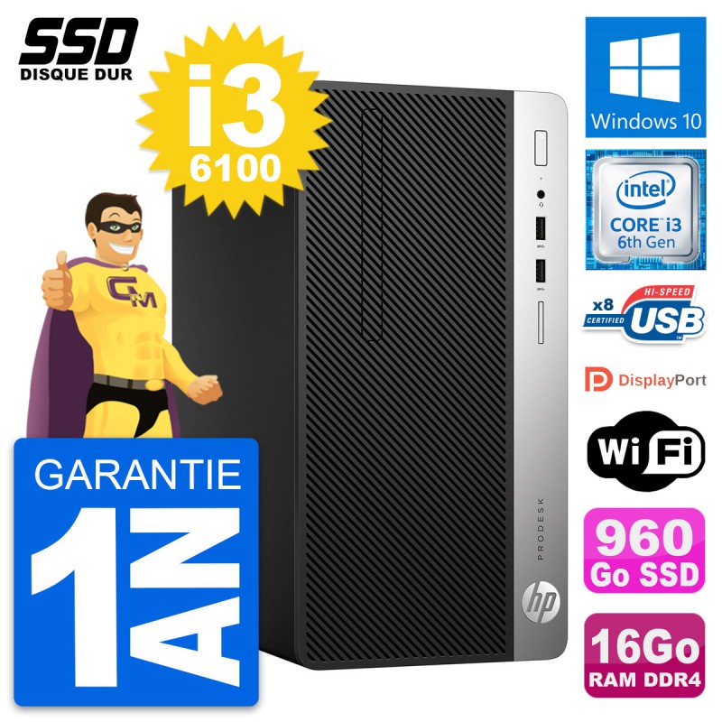 PC Tour HP ProDesk 400 G4 MT Intel i3-6100 RAM 16Go SSD 960Go Windows 10 Wifi