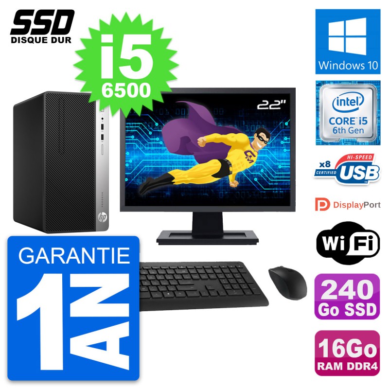 PC Tour HP ProDesk 400 G4 MT - Intel Core i5-6500 3.2 Ghz (6 Mo) - 16 Go DDR4 - SSD 240 Go - Clef Wifi USB - Windows 10 - Livré avec Ecran 22" + clavier + souris (Marques et modèles variables) - Garantie 1 an.