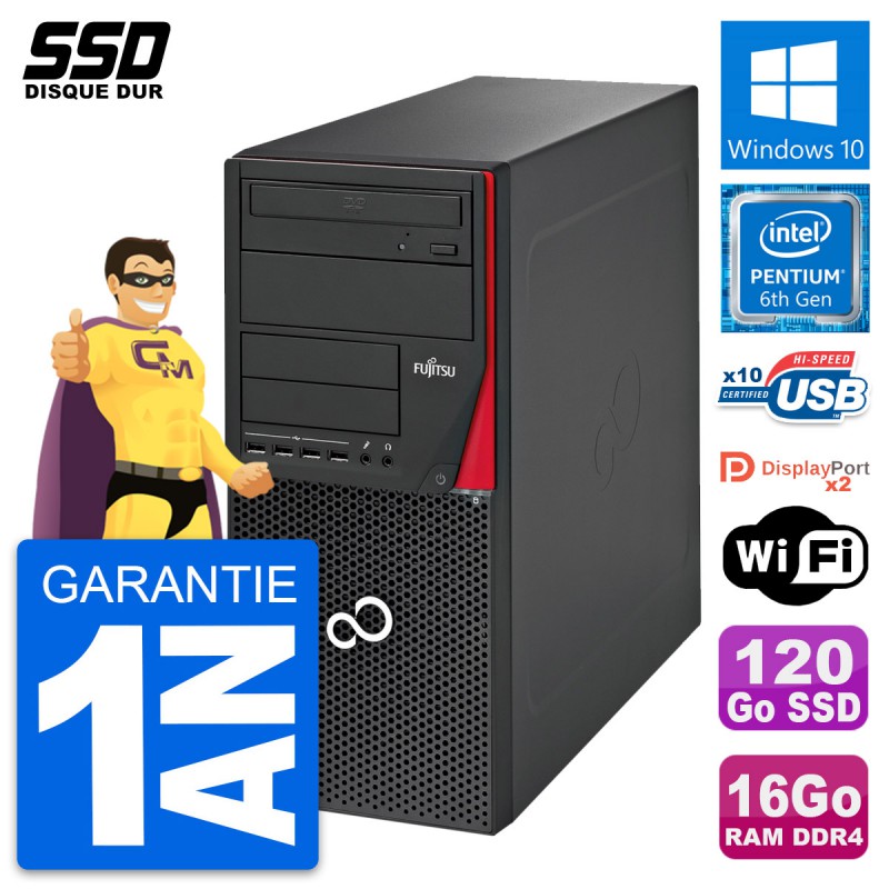 PC Tour Fujitsu Esprimo P756 MT - Intel Pentium Dual-Core G4400 3.3 Ghz (3 Mo) - 16 Go DDR4 - SSD 120 Go - Clef Wifi USB - Graveur DVD - Windows 10 - Garantie 1 an.