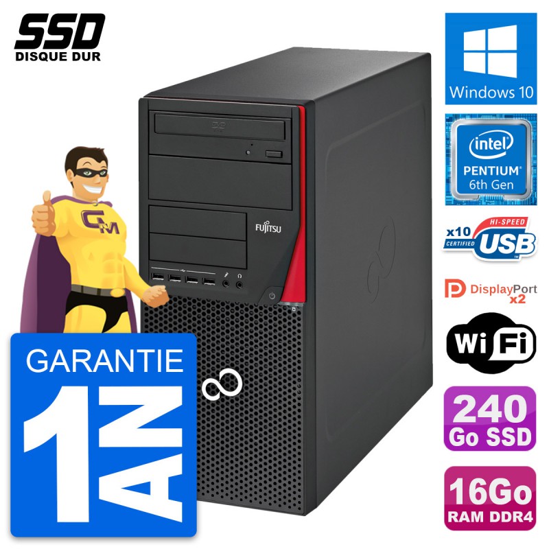 PC Tour Fujitsu Esprimo P756 MT - Intel Pentium Dual-Core G4400 3.3 Ghz (3 Mo) - 16 Go DDR4 - SSD 240 Go - Clef Wifi USB - Graveur DVD - Windows 10 - Garantie 1 an.