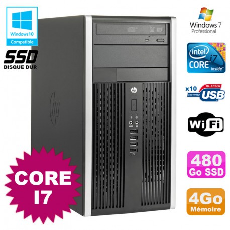 PC Tour HP Elite 8200 Core I7 3,4Ghz 4Go Disque 480Go SSD Graveur WIFI Win 7