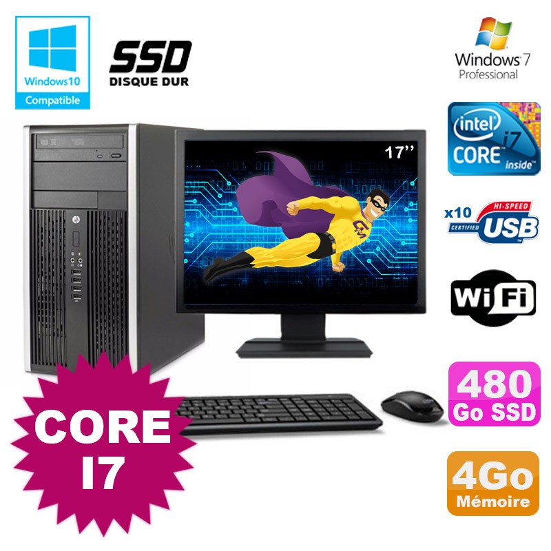 Lot PC Tour HP Elite 8200 Core I7 3,4Ghz 4Go 480Go SSD Graveur WIFI W7 + Ecran 17