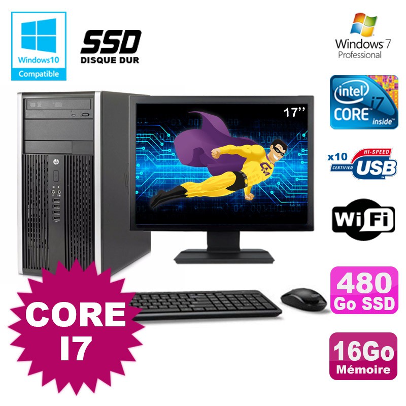 Lot PC Tour HP Elite 8200 Core I7 3,4Ghz 16Go 480Go SSD Graveur WIFI W7 + Ecran 17