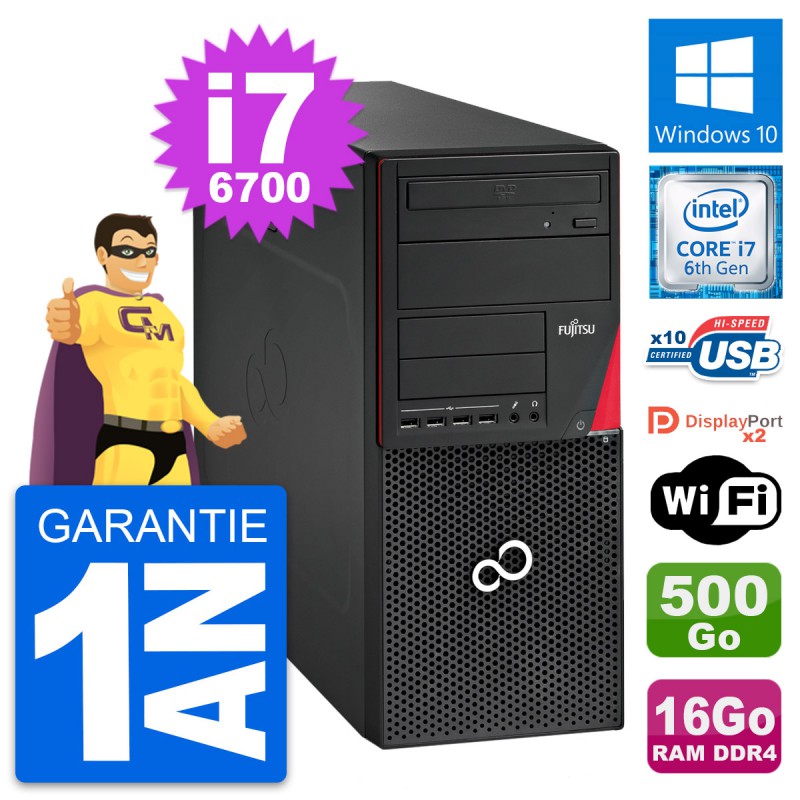 PC Tour Fujitsu Esprimo P756 MT - Intel Core i7-6700 3.4 Ghz (8 Mo) - 16 Go DDR4 - Disque Dur 3,5" 500 Go - Clef Wifi USB - Graveur DVD - Windows 10 - Garantie 1 an.