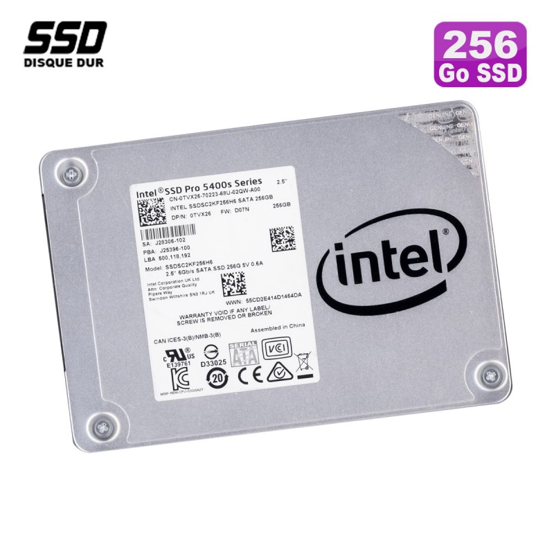 Disque Dur SSD 256Go de 2.5" - Intel / Dell - Modèle Pro 5400s Series / SSDSC2KF256H6 - P/N 0TVX26 / TVX26 / D07N - SATA III / 6.0 Gbps - Garantie 6 mois.