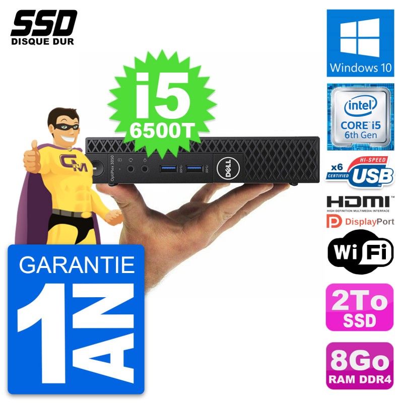 Mini PC Dell OptiPlex 3050 Micro - Intel Core i5-6500T 2.5 Ghz (6 Mo) - 8 Go DDR4 - SSD 2 To - Clef Wifi USB - Windows 10 - Garantie 1 an.