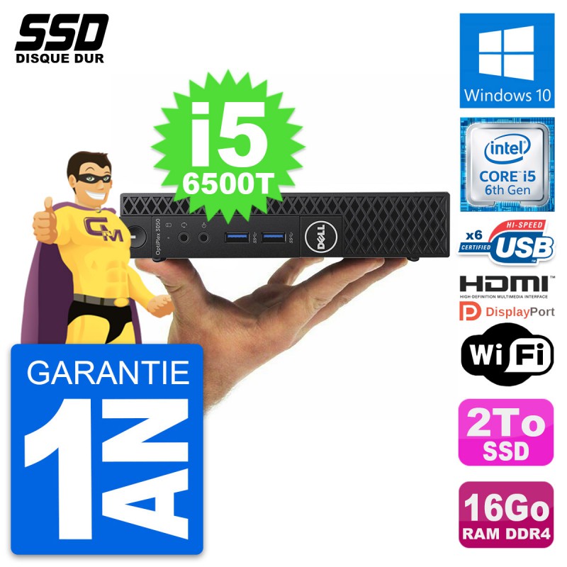 Mini PC Dell OptiPlex 3050 Micro i5-6500T RAM 16Go SSD 2To HDMI Windows 10 Wifi