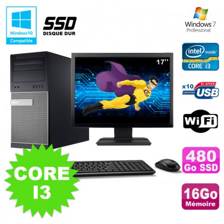 Lot PC Tour Dell 790 Core I3 3.1Ghz 16Go 480Go SSD DVD WIFI Win 7 + Ecran 17"