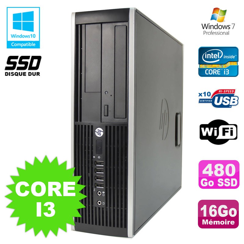 PC HP Compaq 6200 Pro SFF Core i3 3.1GHz 16Go 480Go SSD DVD WIFI W7 Pro