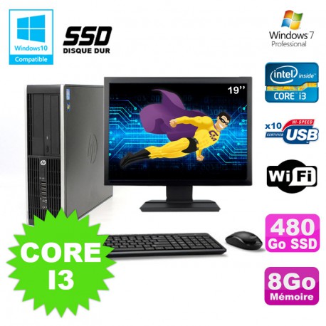 Lot PC HP Compaq 6200 Pro SFF Core i3 3.1GHz 8Go 480Go SSD DVD WIFI W7 + Ecran 19